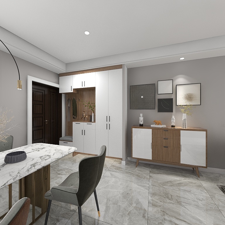 餐厅连接玄关,白色大理石桌面与玄关柜相辅相成,使空间得到了极好的延伸和拓展。