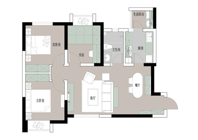 通透户型,明卫设计,净雅明亮,餐厅、客厅连成一线,空间利用率高。