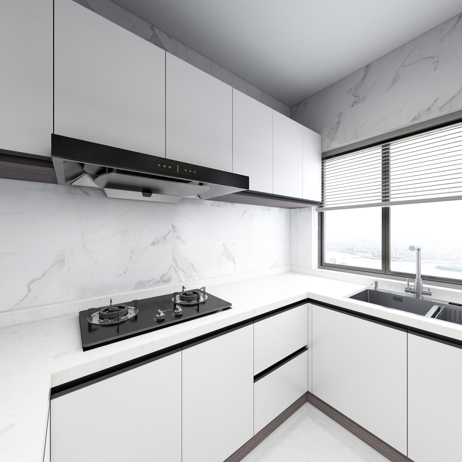 白色厨房空间透露出不凡的生活品味,白色橱柜彰显出精致的生活态度。