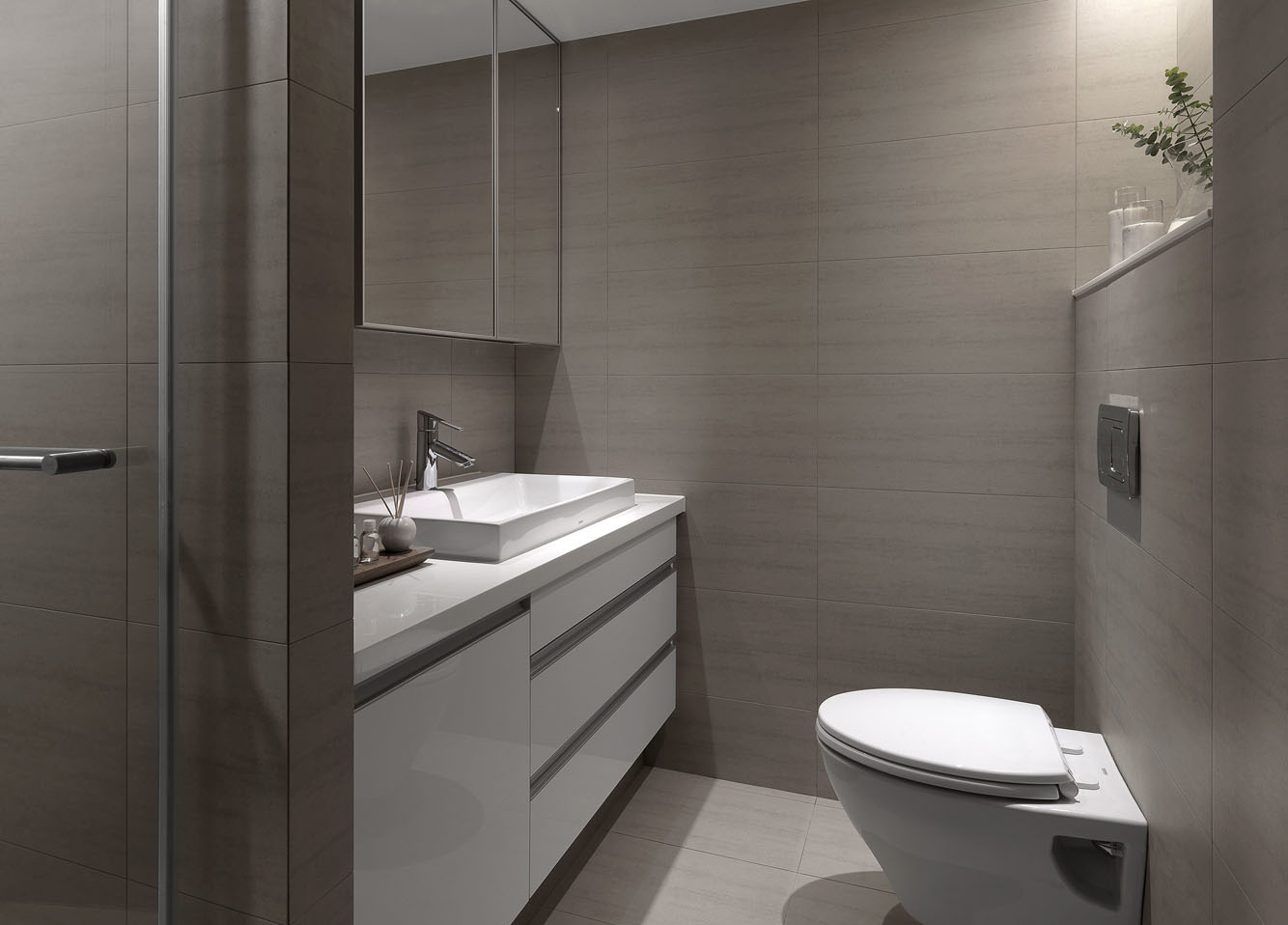 卫生间在色彩搭配上融合了米色调,体现出空间主人独特的品味追求。