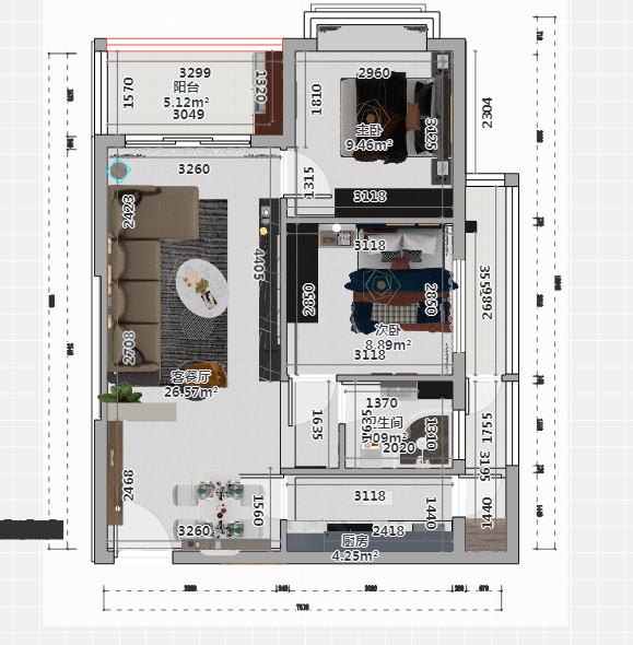该户型方正,能基本满足家庭的功能使用,设计师对整体结构改动不大。