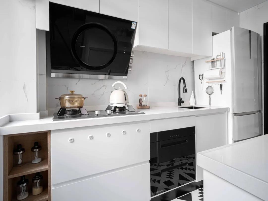 橱柜与背景颜色相得益彰,动线规划流畅,形成了高效的烹饪空间。