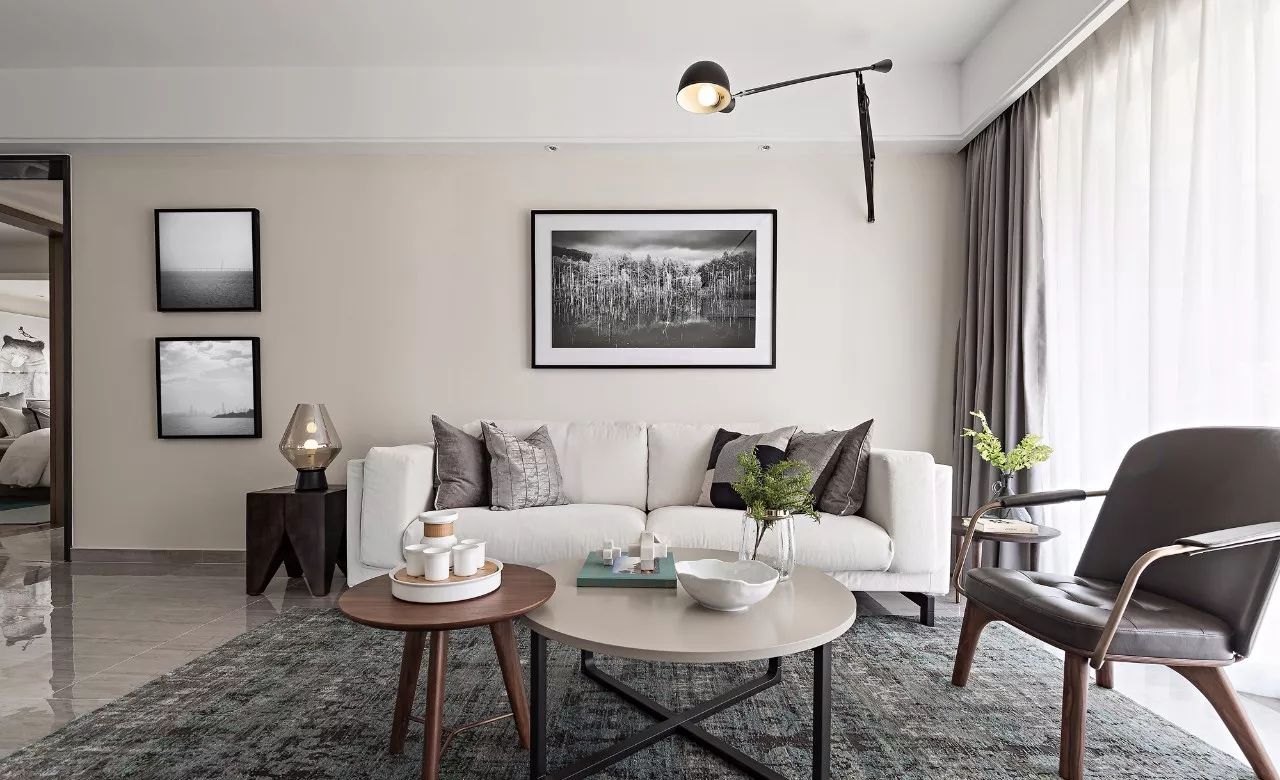 客厅采用无主灯设计,线性壁灯打破了固有的空间设计思维,为客厅带来些许动感。